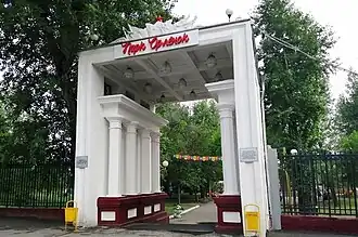 «Арка» — входная парковая группа сооружена в 1935 году, является исторической приметой города Абакана.