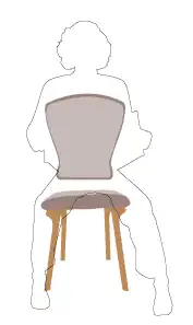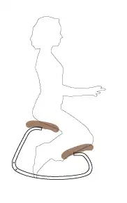 В этом случае вес тела распределяется, помимо ягодиц, ещё и на переднюю поверхность голеней сидящего человека. Угол между бедром и корпусом тела при посадке на данном типе стульев равен 110—120 градусам, в этом случае таз несколько подаётся вперед, и происходит прогиб поясницы в переднем направлении. Поясничный отдел позвоночника в этом случае принимает естественное положение, практически как при положении «стоя». Также часть веса переносится с таза на переднюю поверхность голени, разгружая таким образом мягкие ткани, на которые таз опирается.