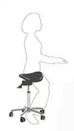 На настоящий момент наиболее отвечает задачам прикладной ортопедии концепция посадки в положении «сидя-стоя», и одна из её наиболее известных разновидностей — посадка «как в седле». В этом случае таз сидящего человека жестко фиксируется в симметричном положении относительно саггитальной плоскости, что, как следствие, приводит и к устранению асимметрии в плечевом поясе. Таз человека, сидящего на стуле такого типа, оказывается наклонен вперёд, что приводит к формированию и поддержанию поясничного лордоза при сидении в естественном для поясничного отдела позвоночника положении. Как и на стульях с подвижной опорной поверхностью, у стульев данного типа отсутствует спинка, что приводит к активному удержанию равновесия за счёт попеременной работы мышц спины и поясницы. Однако отличие посадки в положении «сидя-стоя» от посадки на подвижной опорной поверхности состоит в следующем: таз сидящего «как в седле» человека оказывается жёстко зафиксирован, что делает крайние отклонённые влево и вправо от вертикальной оси положения дискомфортными, вызывая мотивацию вернуться к правильной вертикальной позе. Динамическое удержание позы позволяет минимизировать статические напряжения, возникающие в области поясницы при сидении на большинстве классических вариантов стульев.