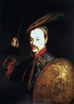 - "Дивизию правого крыла": 3 гусарских, 17 козацких, 6 татарских хоругвей, 1 полк и 2 хоругви рейтар, 3 полка и 5 хоругвей драгун, 1 полк и 2 роты немецкой пехоты, 5 хоругвей польской пехоты. Всего около 8000 человек. Командование - Януш Радзивилл.