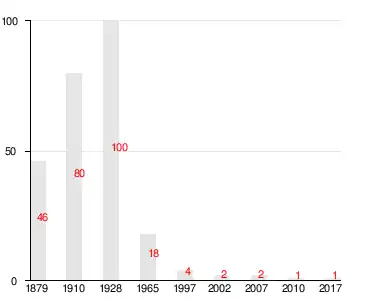 | 1997[14] | 2002[15] | 2007[16] | 2010[17] | 2017[1] |