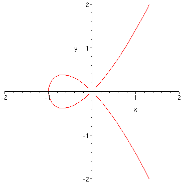 | График, определённый выражением , имеет в нуле особенность — вертикальную касательную. | Кривая, заданная уравнением , имеет в (0,0) особенность — точку самопересечения. | |