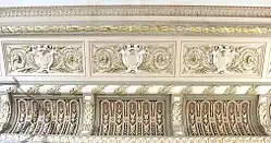 Архитектор детально проработал интерьеры внутренних помещений. По проекту Шервуда были созданы несколько парадных залов — зеркальный, мавританский, барочный, музыкальный. В отделке широко использовалась гипсовая лепнина с позолотой и серебрением, в верхней части стен располагались живописные картуши[6][18].