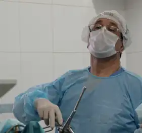 Профессор Оспанов О. Б. во время операции - Внедрил соединитель тканей собственной разработки.