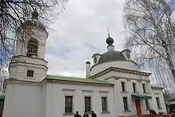 Храм построен в 1781 году Анной Григорьевной — вдовой Козьмы Матвеева, освящён в 1782-м. Выполнен в стиле раннего классицизма, Сложен из красного кирпича с белокаменными элементами декора и увенчан куполом с четырьмя люкарнами. У входа находились могилы малолетних сыновей Петра Андреевича. Вяземские жертвовали для храма деньги, иконы, кресты, платили жалованье церковнослужителям. По инициативе графа Шереметева при храме был организован хор мальчиков. В церкви хранились иконы Св. Великомученицы Екатерины, а также Св. Петра и Павла, пожертвованная Дмитрием Столыпиным[33][36].