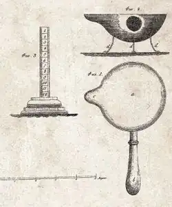 ...В той бочке, взяв стопку небольшую жестяную, каковы образцы посланы с метками которыя значат части, на сколько доль та стопка разделена, и наполня тем вином, вылить в малой железной или медной ковшик, и подогреть вино, зажечь и дать гореть пока угаснет и больше гореть нестанет, и остатки от того жженаго вина вылить опять в туж стопку, и смотреть по меткам половина ль угорела, или больше или меньше из всей стопки сколько доль убыло…