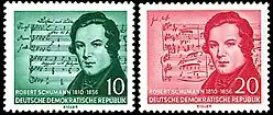 На серии из двух (10 и 20 пфеннигов) почтовых марок, посвящённой столетию со дня смерти композитора Роберта Шумана после выхода марок в свет обнаружилось, что позади его портрета были даны ноты «Песни ночного странника» на стихотворение Гёте, принадлежащие Францу Шуберту. Марку изъяли из продажи через четыре дня и спустя три месяца допечатали исправленный вариант с нотами самого Роберта Шумана.