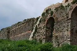 - ↑ К 1993 году было откопано около 50 м стены, толщина которой достигает 2.5 м. Общая длина стены составляла приблизительно 2.8 км[96].