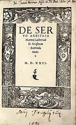 О рабстве воли (лат. De Servo Arbitrio) — книга Мартина Лютера, написанная в ответ Эразму Роттердамскому. Написана в декабре 1525 года. Основная идея книги — критика свободы воли. Лютер обращается за примерами к древним авторам, сочинения которых говорят, что люди ведомы предопределением. Впрочем, он оставляет свободу для решения мирских дел. Лютер прибегает к авторитетам Августина и Уиклифа.