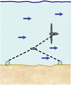 Схема турбины, удерживаемой кабелями