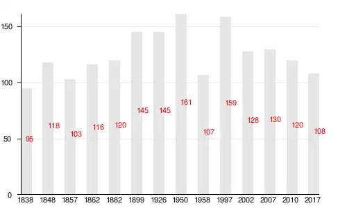 | 1838 | 1848 | 1857 | 1862[28] | 1882 | 1899 | 1997 |