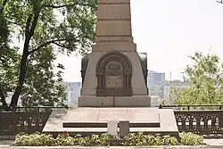 С восточной стороны от него, на обрамляющей террасу стенке, укреплена чугунная мемориальная доска с текстом: «Основатели Владивостока — солдаты 3-й роты 4-го отдельного линейного батальона под командованием прапорщика Н. В. Комарова высадились на этом берегу с транспорта „Манджур“ 20 июня (2 июля) 1860 года».