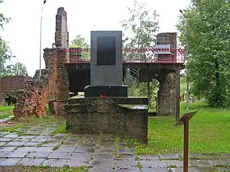 - ↑ Книга Памяти Северо-Западного федерального округа - Полуразрушенная в годы Великой Отечественной войны стена здания - памятник «Эхо войны». memgid.ru. Дата обращения: 24 февраля 2021.