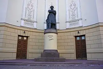 Памятник великому русскому поэту расположен с восточной стороны театра, в то время как с его западной стороны, также в экседре, находится сопоставимый по размеру памятник великому татарскому поэту Габдулле Тукаю (1886—1913). Оба памятника символизируют русскую и татарскую культуры, воплощённые в традициях Татарского театра оперы и балета имени Мусы Джалиля.
