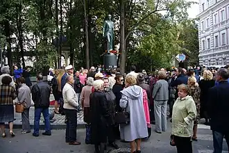 Через год — 15 сентября 2011 года — состоялось торжественное открытие памятника. На церемонии присутствовали министр культуры и туризма Азербайджана (2006—2018) Абульфас Гараев, Елена Образцова, Бедрос Киркоров, Евгений Герасимов, Юрий Николаев, Татьяна Тарасова и автор памятника скульптор Александр Рукавишников.