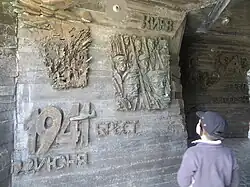 Вторая мировая война скульптурно представлена в чёрном бункере. Справа представлена Катастрофа европейского еврейства, а слева — основные сражения на протяжении всего периода Великой Отечественной войны[4].
