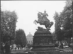 Русские солдаты у памятника Яну III Собескому во Львове во время Первой мировой войны. 1914 г.