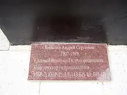 | авиаконструктору Андрею Сергеевичу Корытину | |