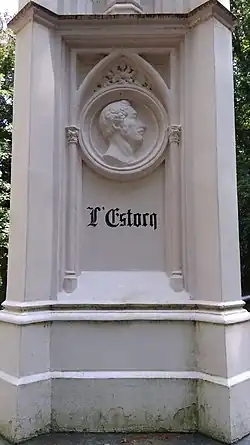 На лицевой стороне обелиска можно прочесть оригинальное прусское название памятника — «8 февраля 1807. Славной памяти Лестока, Дирике и их братьев по оружию» (нем. Dem glorreichen Andenken L'Estocqs, Dierikes und Ihrer Waffenbruder).