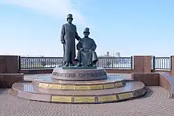 Территория, на которой была установлена скульптурная композиция, была облагорожена, замощена брусчаткой. Рядом поставили чугунное ограждение, а на спуске к «Ижмашу» — красивую лестницу. Вокруг памятника расположили скамейки. Эта площадь получила название Площадь оружейников.