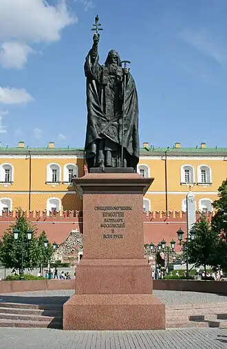 - ↑ Святейший Патриарх Кирилл совершил освящение памятника священномученику Ермогену у стен Московского Кремля. Патриархия.ru. 25 мая 2013. Архивировано 2 августа 2022. Дата обращения: 2 августа 2022.