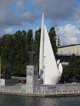 Памятник рыбакам (Пионерам океанического лова) установлен в Калининграде в 1978 году[1]. Монумент представляет собой бетонную конструкцию в виде двух парусов рыбацкой шхуны (по другой версии в виде двух ладоней). На западной стороне стилобата размещена надпись из бронзовых букв: «Пионерам океанического лова». На восточной стене — посвящение «Светлой памяти рыбаков, погибших в море». Эпитафия дополняется парящей бронзовой чайкой — вечным спутником мореплавателей.