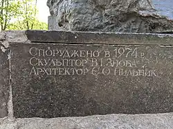 Авторы: скульптор В. И. Зноба, архитектор Е. А. Пыльник. Находился в Киеве в сквере на Ялтинской улице.