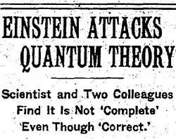 - ↑ Einstein attacks Quantum theory, The New York Times, 4 мая 1935