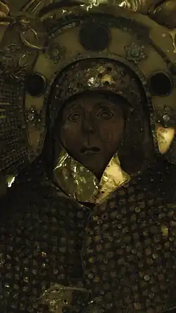 - ↑ В настоящее время большая часть статуи скрыта ризой и киотом. Доступны взгляду по факту только лицо Параскевы Пятницы и кисти её рук.