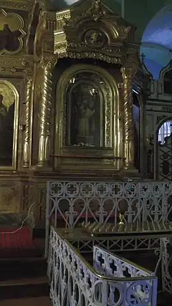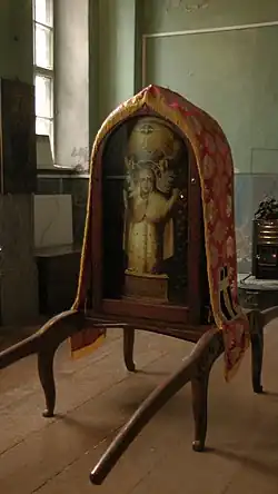 Икону поместили в местный деревянный храм Святого Николая Чудотворца, а один из его приделов, по словам Юлии Старцевой, уже тогда освятили в честь явления иконы Параскевы Пятницы[26][27]. Её слова не подтверждаются данными историко-статистического справочника 1885 года. В формуляре 1792 года написано лишь: «Церковь Св. Николая Чудотворца деревянная; престол один; за ветхостью оной начата строить (?) другая каменная». Придел Параскевы в нём не упоминается. В формуляре за 1793 год уже более точно сказано о появившемся приделе: «Церковь Николая Чудотворца деревянная, престол один; а ныне вновь построена каменная, и в ней придел Великомученицы Параскевы освящён»[32].
