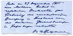 - ↑ Германия и русские революционеры в годы Первой мировой войны. Документы // Николаевский Б. И. Тайные страницы истории. — М., 1995.