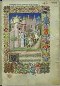 | Колен Амьенский (фр. Colin d'Amiens, сын Андре из Ипра) | Джованни Боккаччо, «О несчастиях знаменитых людей» фр. Boccace, Livre des cas des nobles hommes et femmes | 1448-1450 | Пергамент, 427 × 308 мм; 328 листов. | Женева, универс. б-ка; «ms. fr. 191»; см. | ![]() |