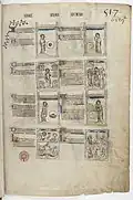 | Группа мастеров во главе с Жаном Монмартрским (Jean de Montmartre; актив. ок. 1349—1352) | «Нравоучительная библия Иоанна Доброго» фр. Bible moralisée de Jean le Bon | 1345-1355 | Пергамент, 340 × 29 мм; 321 лист. | НБФ; «ms. fr. 167»; см. | + илл. |