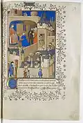 | Жан Пюсель и его мастерская | Готье де Куэнси: поэтический сборник мираклей «Чудеса Богоматери» (1214—1233) фр. Miracles de Nostre Dame | 1328-1332 | Пергамент, 340 × 242 мм; 244 листов. | НБФ; «ms. n. a. fr. 24541»; см. | ![]() |