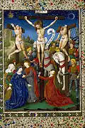 | Мастер королевского секретаря Дрё Будэ (фр. Maître de Dreux Budé; Louis le Duc?; акт. в Париже ок. 1454) | Картина «Христово распятие из парижского парламента» Retable du Parlement de Paris | ок. 1449 | Дерево (дуб); 145,8 (высота по центру 226,5) × 270 см | Лувр; «RF 2065»; см. 1 и 2 | |