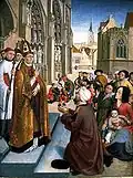 | Мастер «Святого Эгидия» | Картина «Крещение Хлодвига» фр. Baptême de Clovis | ок. 1500 | Дерево (дуб), 61,6 × 46,7 см | Вашингтон, Национальная галерея искусства | ![]() |
