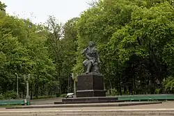 2 июня 1962 года возле входа в парк был установлен памятник А.Пушкину (скульптор А. А. Ковалёв, архитектор В. Г. Гнездилов). Статуя поэта высотой 3,5 м, находится на постаменте из чёрного лабрадорита. Общая высота памятника составляет 7,6 метра. Памятник Пушкину стал первым Киевским памятником, который сидит.