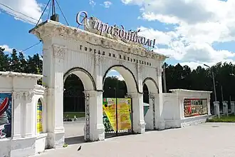 Парковые работы возобновились в 1947 году. Год спустя началось строительство арочного входа в парк. По воспоминаниям скульптора Ивана Семёновича Козловского, автора проекта и эскизов арки, идея о её создании принадлежала первому секретарю горкома партии Александру Андреевичу Прохорову. Вместе с Иваном Семёновичем над сооружением арки главного входа трудились Иван Ильич Гилев и Виктор Петрович Решетников. Работы велись два с половиной года.