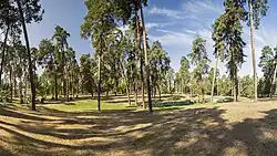 Парк был создан на базе соснового леса. Общая площадь парка — 111,97 га, насаждениями занято более 100 га территории парка, водоёмами — 3,4 га, зданиями — 0,3 га.