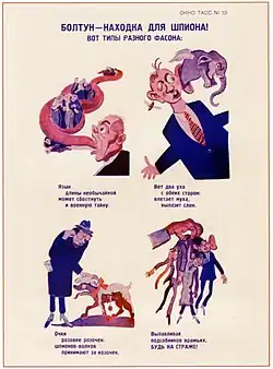 - ↑ Ещё одна пародия на схожую тему, на этот раз в экранном варианте, также появилась в 1967 году — ею стал мультфильм Е. Гамбурга «Шпионские страсти»[23].