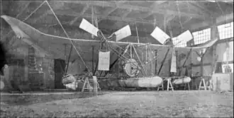Форма аэростата приобретённого для Русской императорской армии (см. рисунок) — продолговатая с сильно заостренной задней частью. Неизменяемость формы поддерживается двумя баллонетами, которые вместе с тем служат рулями высоты, для чего нужно из одного баллонета выпустить воздух, а в другой вогнать. Под аэростатом проходит жесткий шланг в баллонеты с особой распределительной коробкой посредине, откуда идет шланг к вентилятору. Гондола — металлическая, подвешена на двух боковых металлических тросах, по которым может немного перекатываться на рамках, и 2 или 3 парах вертикальных тросов. Винты сперва употреблялись мягкие (системы Парсеваля), но затем стали использоваться деревянные, как и на других системах[4].
