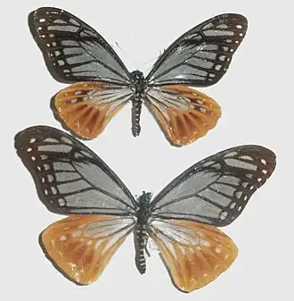 Размах крыльев от 8 до 9,5 см. Бабочка сильно отличается от представителей рода Papilio. Она похожа на вид Данаида сита (Parantica sita) из семейства Данаиды. У этих видов одинаковая окраска, особенности полёта, а также расположение крыльев при посадке.