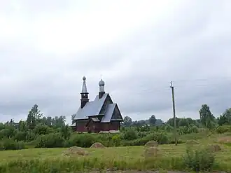 - За ним неподалёку расположена церковь святого Серафима Саровского, несмотря на то, что она построена в конце XX века, выдержана в традиционном стиле клетской церкви XVII века (см. Основные типы деревянных храмов).