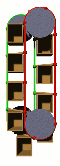 Вид на механизм в верхней поворотной точке. Патерностер в Министерстве транспорта Чехии, Прага