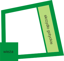 Восточная часть замка в наше время состоит из двух крыльев, примыкающих друг к другу длинными сторонами: готического (с запада) и неоготического (с востока).