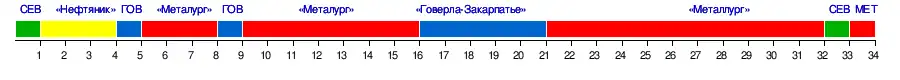 | Команда | АРС | БУК | ГЕЛ | ГОВ | Д-2 | ЗВЕ | КРМ | ЛЬВ | МЕТ | НЕФ | НИВ | НИК | ОДЕ | ОЛИ | СЕВ | СТА | ТИТ | ЭНЕ |