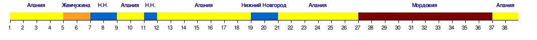 | Мордовия | 1:2 | 3:1 | 3:4 | 3:1 | 3:2 | 2:3 | 2:1 | 1:0 | 1:1 | 3:1 | 1:0 | 2:1 | 4:0 | 2:0 | 4:2 | 3:2 | 2:1 | 2:1 | 0:0 | |