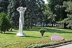 Основной и главной достопримечательностью сквера Первомайского является скульптурная композиция «Юность». Это трехметровая фигура полуобнаженной девушки, выполненная из каррарского мрамора. На постаменте скульптуры выгравированы строчки из стихотворения Владимира Матвиенко.