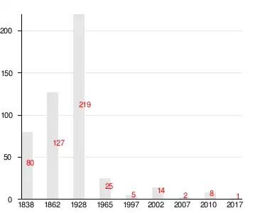 | 1838 | 1862[16] | 1928 | 1965 | 1997 | 2007[17] | 2010[18] |