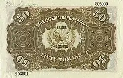 Банкноты выпускались Имперским банком Персии.